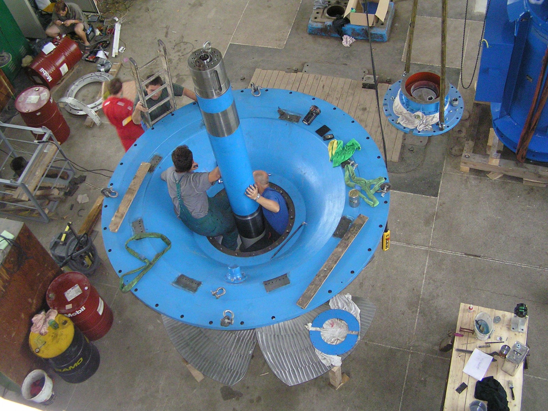 The project included general overhaul of one turbine and complete replacement of the other two Francis turbines for new Kaplan turbines.